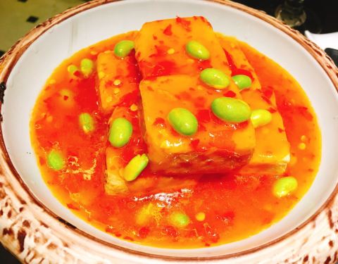 之前去大悦城 这家晚饭饭点排队的人很多 这次周日5:30前过去 几乎没什么人。 二人位在几个大桌旁边的边边角角 感觉是加座 体验不大好 但还好服务不错。 【零添加黏嘴冻】蛮好吃的 不过这个算冷菜不算甜点也是特别 里面的牛奶冻特备好吃 不甜 也不是很腻。 【牛油果油条虾】最出彩的是蜂蜜芝士淋酱 油条和虾本身也就这样 虾仁不是很多 配的水果还蛮不错的 草莓和哈密瓜。 【孜然酥香煎羊排】蛮酥的 羊肉也不老 就是肥肉有点多。 【梅家独门臭豆腐】是最好吃的一道菜 能把臭豆腐这个平凡的材料做成这个味道很不错了 酱汁也不是看上去的辣味 是咸鲜味为主。 【鹅肝】一般;【菠萝茉莉】的饮料也一般。 整个餐厅适合6-8人的宴请 可以多吃几道菜。摆盘好看的~