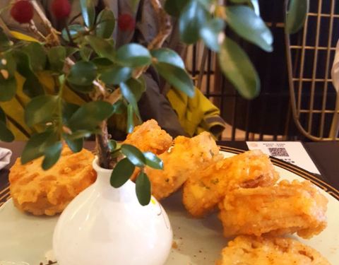 十一點半不到到的店,沒想到位置已經不多了…菜單封面上寫的精緻上海菜…點了大概7個菜,3個人有點多沒吃完,只能打包…上菜很快…他家擺拍不錯…量也是不少的…火焰牛蛙,裡面是薯條和炸過的牛蛙,薯條比較辣,牛蛙還好…外面酥脆裡面嫩嫩的…含苞欲放,名字很美…可以說事實是一道甜品,白巧克力球裡面牛奶小方,配上淋上的巧克力醬牛油果油條蝦,和含苞欲放有點異曲同工…只是外面是糖做的,淋上芒果醬…外殼比較堅硬…服務員敲了半天才敲碎甜鹹的配搭,還不錯…藕餅,6個一份,夾的蝦肉,最裡面有芝士,可以拉絲…要小心燙口…蝦肉裡有+橙皮丁,吃上去不會膩