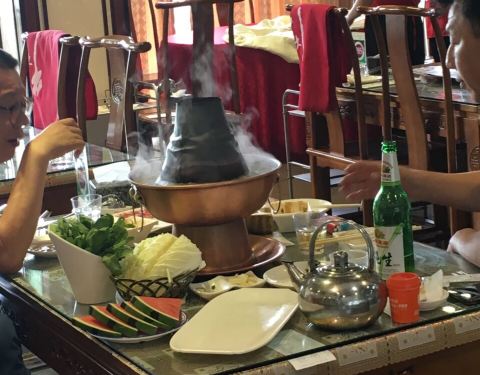 这家店从地铁5号线和平里北街西南口D口上来就是,紧邻东单菜市场。真正的老北京涮羊肉,调料可以自选,羊肉很棒。其实他家的热炒、凉菜也是很有特色。芝麻烧饼和葱花饼都很好吃。