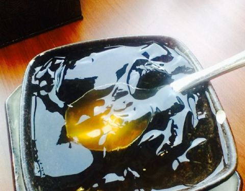 冒菜的样子,总体不错,和吃冒菜价钱都大同小异。团购套餐只送一个麻油,不沾油碟硬是有点辣。口味正常嘛。两个人还加了几个菜,三份起加。冰粉我最开心,不冰,我感觉吃辣的吃冰的东西,就会更辣,因此我不喜欢吃辣的时候吃冰的,这个冰粉又糯又可口,完全绝配,凉凉的不冰。还有饮料也可以,有个复古的豆奶。