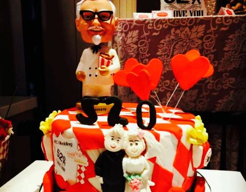 ...,新娘经常来吃肯德基,于是他们相识并相爱了,新娘CC曾开了句玩笑,以后婚礼干脆在肯德基举办好了