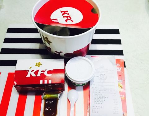 又出十翅一桶了,奔着鸡翅去的。在奥特莱斯,过去很便利,店面位置很明确,空间略显拥挤。这家店设置了一个很亲切的角落,有纸巾,酱,被子,温开水以及打包袋,有需要可以直接拿,非常合适。现在肯德基出叫号服...