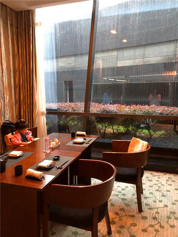 入住日航酒店,早餐自然在日航酒店的全日餐厅里享用。这个早餐我的打分只能说是一般。 第一个,用餐的人确实比较多,酒店方面也给出了提示,这点可以理解。但不管怎么说,人多的话,体验感还是多少会有所下降的。 第二个,这里的早餐特色不够鲜明。并不是说东西不多,而是觉得这里并没有因为日航的缘故而增加很多日本特色的早餐种类,总感觉中不中,日不日,很尴尬。哦,新鲜水果的种类有些少。 第三个,有些设备坏了,还摆出来,并不能使用,比如那个五谷杂粮机器,我们一开始很想给宝宝弄一杯五谷杂粮的,后来发现出来的是白开水混浊液,不知道是什么缘故? 说完几个缺点,你来说几个做的不错的地方,第一个这里的面包种类还是相当丰富的。甜甜圈挂在树枝架子上,倒也是非常别致。 第二是我前面已经提到了,就是这里的餐点品种还是很多的。中餐之中还有早餐罕见的咖喱盖浇饭。 第三是这里的面档,不仅有中式的,还有日式的。虽然日式只提供乌冬面和荞麦面。不过配料非常丰富,客人可以根据自己的喜好自行调节。其实这里的早餐还提供味增汤,不过是放在粥类一起的,而且滋味只能说一般了。 总的来说,这里的早餐只能说是勉强合格,还是那句话,种类足够,特色不显,比起客房给我们的体验还是有差距的。