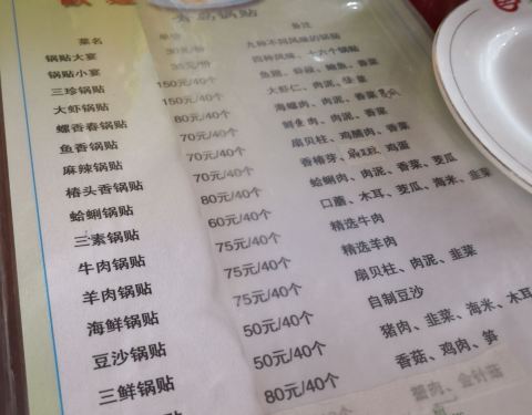 附近吃的比较少,正好路过这家锅贴店,人蛮多的,环境很一般吧,比较老了,好吧!或许要的就是这种感觉吧!他家主要就是吃锅贴的,品种很多,价格也算便宜吧!可以按照斤来买的! - ...食量大的可以来个三四两,我这种小鸟胃二两也木吃上哈哈,饺子好吃,皮儿薄,三鲜馅的吃着xuan凉