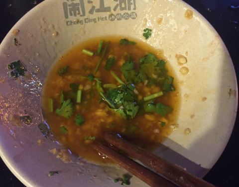 这么大个火锅店,居然说调味香菜用完了。因为去了洪崖洞,网上说是网红火锅店(极限挑战打卡点)