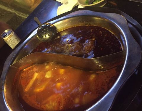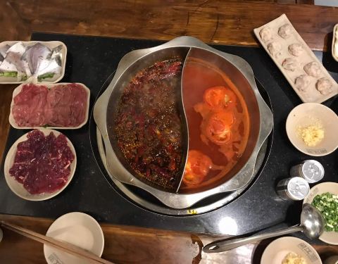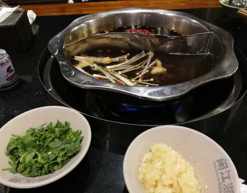 - 这么大个火锅店,居然说调味香菜用完了。因为去了洪崖洞,网上说是网红火锅店(极限挑战打卡点)