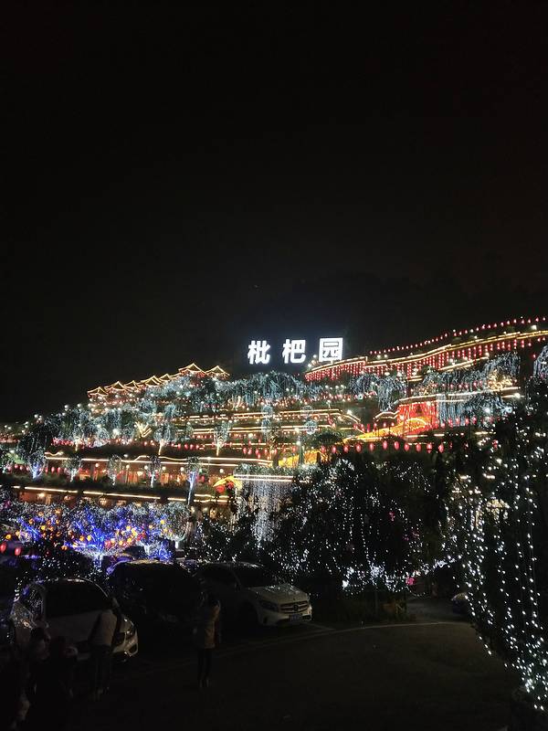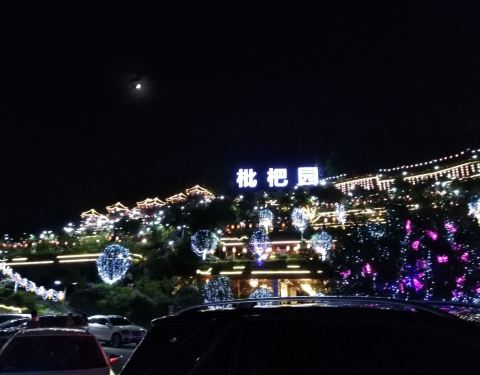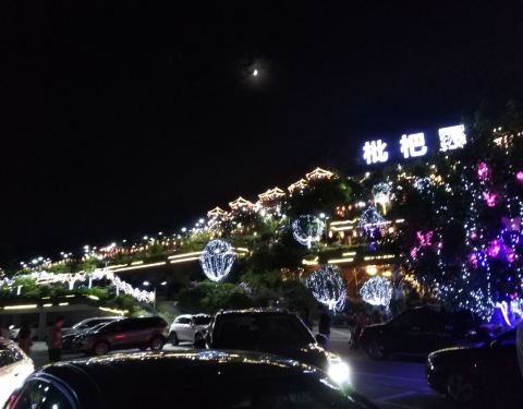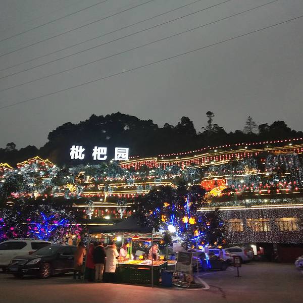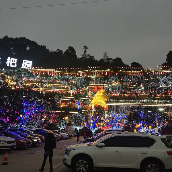 我们是17年10月23日来的。 我们到时,天已经黑了。这时才看清原来店名叫“枇杷园食为鲜火锅”,还是个名店。这时才明白原来所谓的山上是这里地势很高,也的确是建在山上的,来的路上经过盘山路九转十八弯上来的...我们是17年10月23日来的。 我们到时,天已经黑了。这时才看清原来店名叫“枇杷园食为鲜火锅”,还是个名店。这时才明白原来所谓的山上是这里地势很高,也的确是建在山上的,来的路上经过盘山路九转十八弯上来的,一路上连个路灯都没有,黑乎乎的。从酒店过来很近,10多分钟就到了。路上经过一个游乐园,黑黑的一个人没有,不知道是晚上关门了还是已经不营业。 再说这里环境的确不错,满园的枇杷树,就像是个园林景观。整个火锅山很大,对,就是火锅山,这里已经不能用店形容了!据说有好几百桌!整个“火锅山”的灯光氛围很漂亮! 这里的桌位有室内室外,室外的有一些花丛隔离开,像在花园里吃饭一样,不过总感觉如果是夏天的话蚊子会很多。而室内的是在一些亭子里的,就像是一些饭店的VIP包间吧。辣妈朋友已经订了位置,我们的位置在山上最高(好像是)的一个亭子里。我们去的时候人并不多,还是有很多的空桌。据说现在在抖音上火了之后已经是个网红店了,经常排队上百号的属于正常。 就座后店家上了一大锅鸳鸯锅,红锅是用牛油熬出来的,看着红锅红红的颜色以及锅里飘着的花椒真怕吃不了,不过后来吃了后也觉得不算特别辣,能接受。而中间的是菌汤锅。 此时发现旁边有好几罐小易拉罐,刚开始以为是饮料,拿来一看原来是香油。辣妈朋友解说了才知道重庆以及成都等地吃火锅都是用香油来做调料的,而且一倒就是一碗,据说这样吃了不上火味道还很棒。知道这个吃法后,我也入乡随俗,一整瓶倒下去,满满的一碗,之后吃了果然不错,这是我第一次用这么多的香油做调料,一吃便爱上了。不过经过我多次试验,用香油做调味料还是辣火锅最好吃。 之后服务员把菜端了上来就开吃了,这些菜也是辣妈的朋友一早就预定好了的。至于味道细节由于时间太久,不太记得了,总之味道还是不错的。具体的就不多描述,可以看图片。