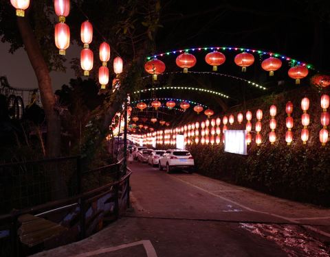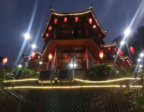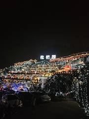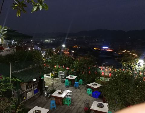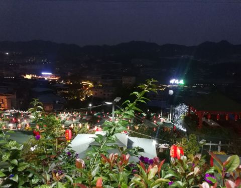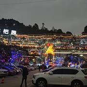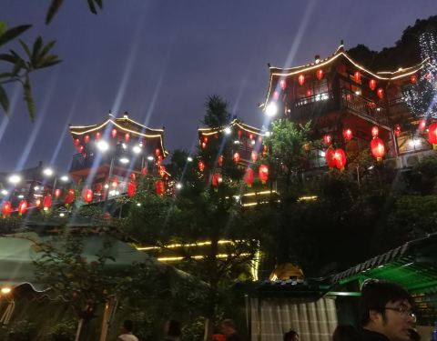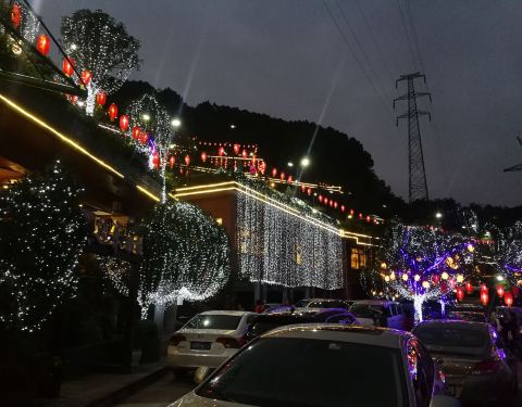 这一条环山而上的路上,有众多规模大小不一的火锅店,都是依山而建,晚上路边、山头挂满的灯笼真的特别漂亮,司机介绍说这一路上的火锅是很出名的,许多外地人来旅游都会来这边,他们当地人来的反而不那么频繁.....司机说他们当地人更热衷于去那些老火锅店.....