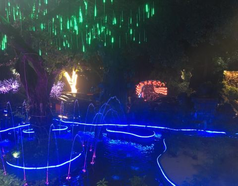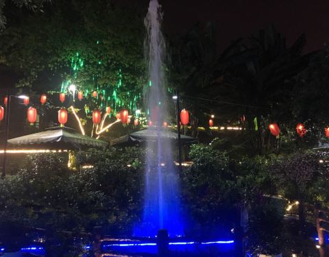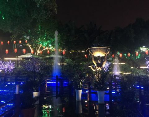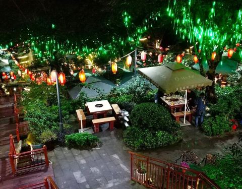 - 不过经过我多次试验,用香油做调味料还是辣火锅最好吃。整个“火锅山”的灯光氛围很漂亮!据说有好几百桌