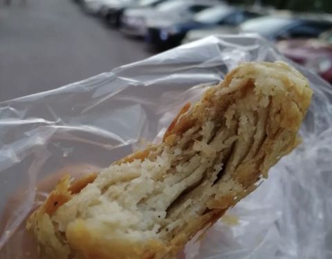 ...别看门脸破旧,但是都是现场制作,安全卫生,水果馅的1.3一个,芝麻烧饼1.1一个,大家可以尝尝