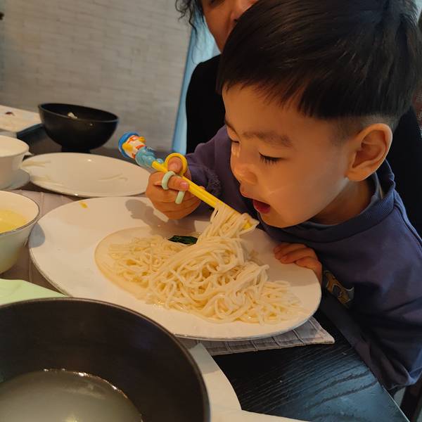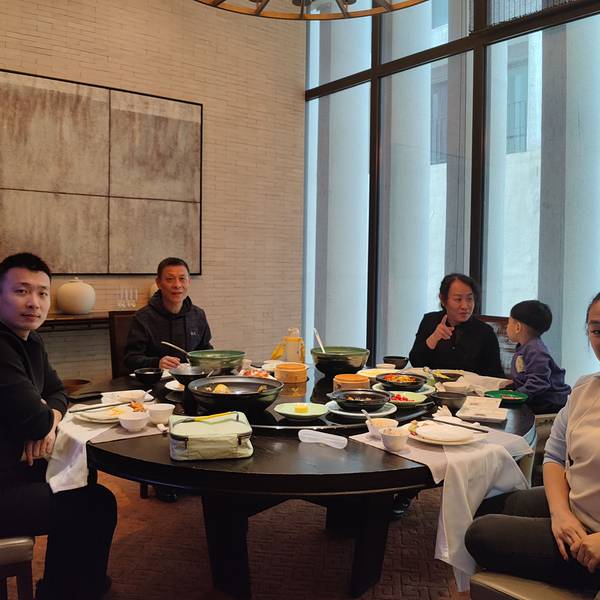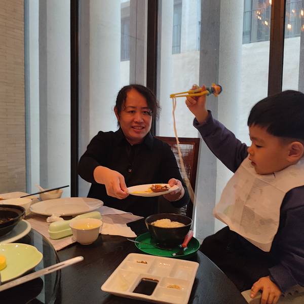 分量很足,有一道太汤菇笋煮黄鱼高汤吊的很入味,做法非常新颖,汤汁鲜美。汉碧楼的服务不得不说非常到位,因为带着小朋友不能吃辣,所以经过后厨反复确认过,将原定偏辣口的阳春面换成了高汤面,里面还多加了青菜。店里特意少放了调料,去了味精,兜爷吃得很开心,所有的菜品他基本都可以使用,而且口感清淡,入口如沐春风。2022年的第一张全家福