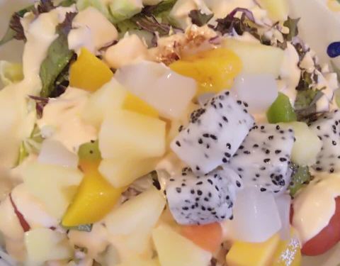 水果沙拉,很大一份,鸡翅也很不错,总之吃的挺开心的,很实惠,下次还会再去的