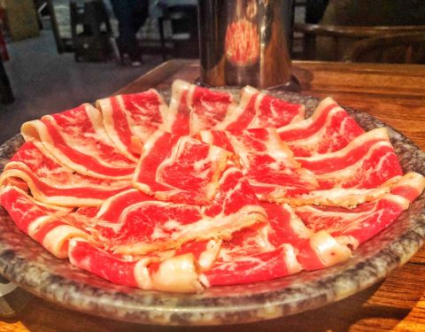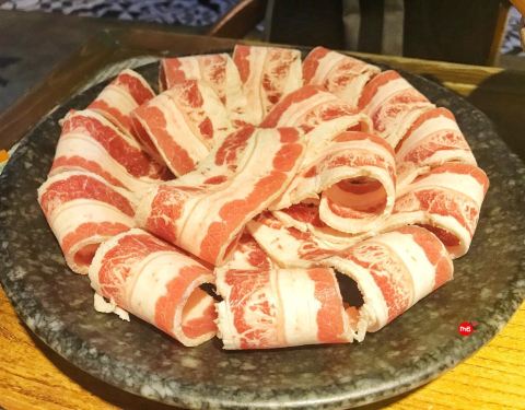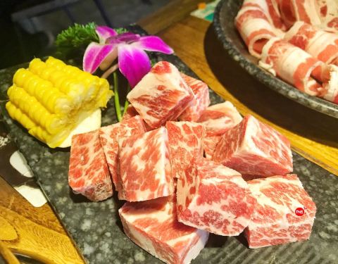 - 量那么大其实也吃不完,有点浪费 烤肉,选了一个猪五花一个牛肉,牛肉后切粒,猪五花略肥,口感都还...