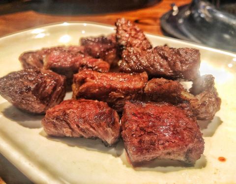 大田家在线等位 到了刚好排到 预估的太准确了 店内一层不大 没有上楼 下单后上炭火 小菜烤肉 一切都很迅速麻利 全程小哥哥帮忙烤 坐享其成 「大田一口牛」一口牛 烤制的非常嫩 蘸点海盐就很好吃 推荐 「吾桑格...