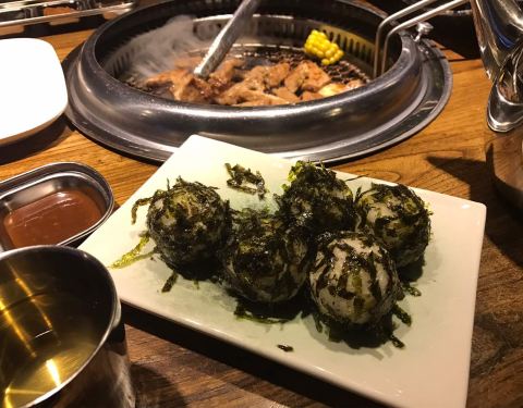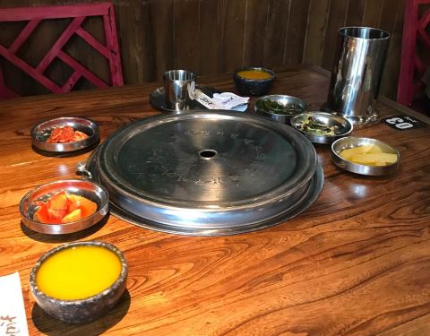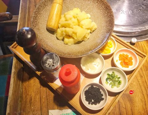 餐厅整体不是太大,中午去的比较早还有座位,点评年会卡券的套餐,看着不多,其实挺丰富,吃饱绝对没问题。 餐前小菜,除了萝卜不是很新鲜味道差,其它都还可以 土豆泥是一个创新吃法,倒入各种配料,撒上佐料,跟土豆一起捣碎,葡萄干配着还挺好吃,但是整体味道比较淡。量那么大其实也吃不完,有点浪费 烤肉,选了一个猪五花一个牛肉,牛肉后切粒,猪五花略肥,口感都还不错 石锅拌饭和大酱汤就是大众口味,没什么过多点评啦 服务确实没大毛病,该做到的都做到了,上菜也快,主动代烤烤肉,部分菜品也会询问客人是否忌口。