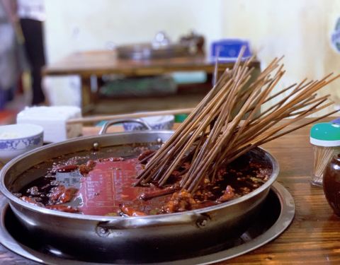 民房改造而成的串串店,演绎经典蜀香麻辣。