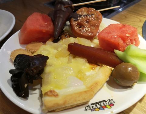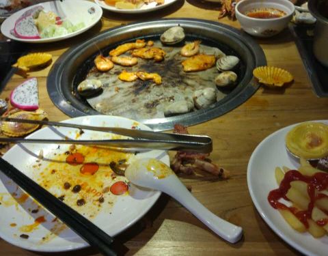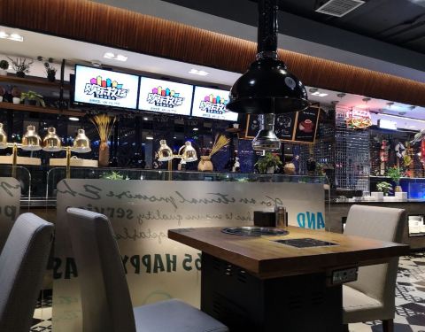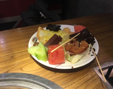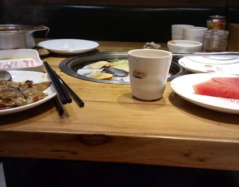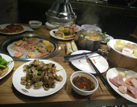地理位置还不错,就在商场的四楼,附近也是一个商圈吃饭的地方挺多的。用餐时间是两个小时,吃饭前要加押金50每人,饭后再退还。自助餐的种类还算比较齐全,酸奶特别好喝!烧烤的图书后放点土豆片,或者红薯片烤出来特别好吃,火锅的清汤也还行~