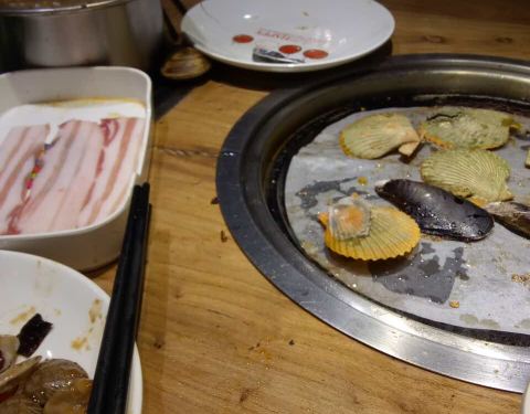 团购的,在百联真光店4楼美食a区,整体环境还行吧,但是服务就不敢恭维了,就拿烤的生蚝为例,量少就算了,但是他们没有限制个人拿的数量,一次烤出的往往被一个人全部拿走,真是服。有些菜品不是太好,但是考虑到价格也就释怀了。掌中宝和虾还是不错滴。