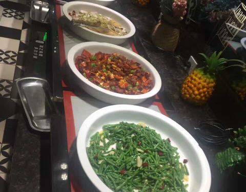 自助餐的种类还算比较齐全,酸奶特别好喝!用餐时间是两个小时,吃饭前要加押金50每人,饭后再退还