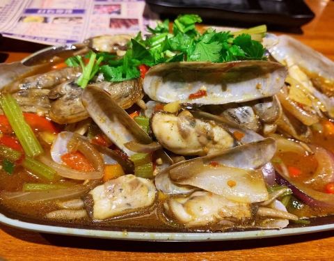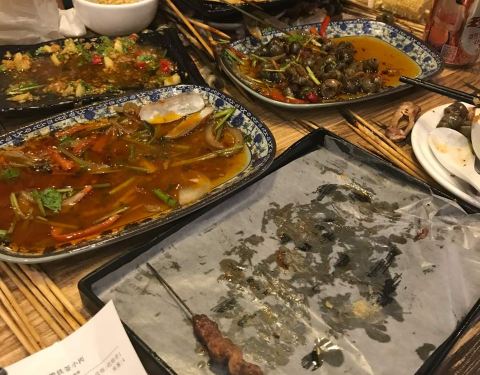 蛏子味道超级好,田螺肉也很赞,牛板筋好吃但是老是塞牙