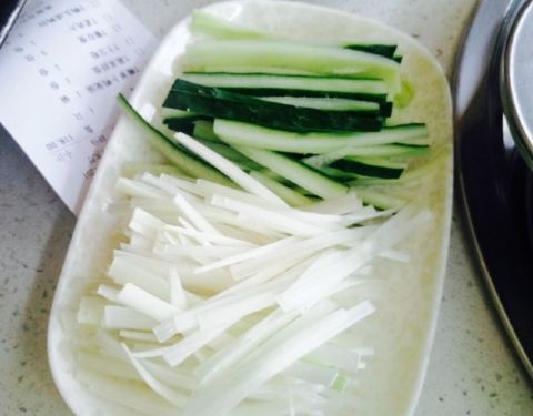 烤鸭是主餐,烤得还算不错,鸭皮比较脆,甜酱咸甜适中,饼皮也比较筋道,加上些黄瓜丝葱丝,吃起来口感不错