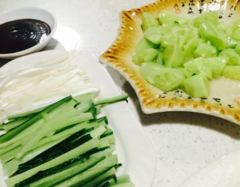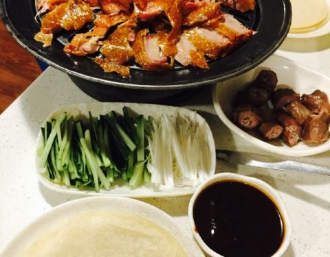 烤鸭是冷的,外皮是热的,还有老鸭汤,蔬菜拼盘,很有味儿,酱汁很好,如果烤鸭是热的话将会更入味