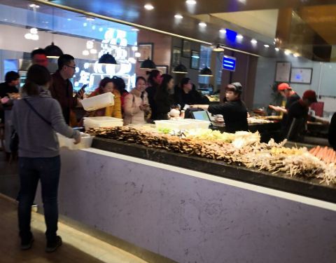 - 口味感觉不如中山路老店好吃,凑合凑合解决一顿而已。这里的食材是自己选的,然后给你烤或者炸串