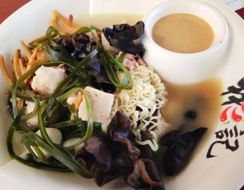...层有个美食广场,转了一圈还是回来吃的麻辣烫,冷柜里面整齐摆放新鲜食材,蛮好,最喜欢里面的黄花菜
