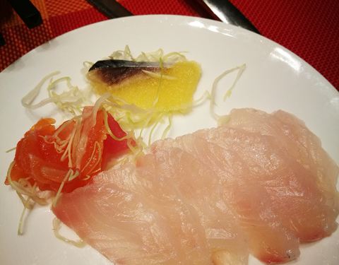 有三文鱼、鲔鱼、鲷鱼等好几个品种,品质都很好,新鲜美味,一点不腥气,口感也很好,吃得甚为满足