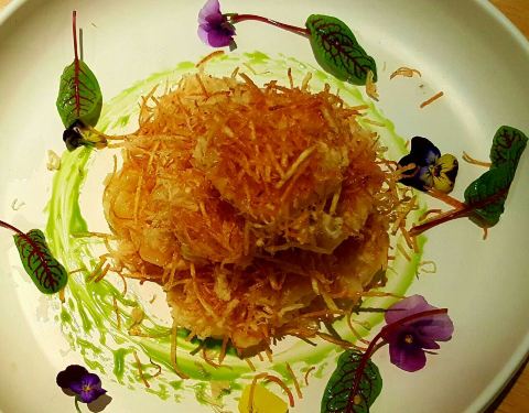 『莎莎Salsa•花影』 一直被模仿,从未被超越,主打京津菜,创意菜分子料理等。这家经典招牌菜,真的很不错,经久不衰,菜品一直保持最棒的水准。 招牌紫薯南瓜沙拉 两种沙拉泥颜色搭配非常棒,鲜明的跳色对比,摆盘也很精美,南瓜泥紫薯泥都很细腻,一点筋都没有,杏仁片的点缀既美观又添加了一些坚果香气。 陕西回族麻酱凉皮 双色凉皮,绿豆面皮和白面皮,洒满花生碎和白芝麻,根据自己的喜好淋上炸好的辣椒油,辣椒油很香,却不是很辣。 芥香虾球 虽然很多餐厅都有这道菜,这里的芥末虾球,却做出了新高度,大虾超大,每一个都加入了肉松,土豆丝炸酥后的碎屑,放在虾球上做点缀,脆脆的很好吃。 新莎莎排骨 虽然是排骨但是肉肉也超多,紧贴骨头的肉是最香的,肉质软烂不柴,很好脱骨,很入味,厨师还搭配了蘸料。 椒盐蘑菇 蘑菇超级嫩,蘸上孜然芝麻蘸料,简直一绝。 川府麻香水煮鱼 四川空运来的麻椒,味道很正点,麻的很过瘾,鱼肉很嫩,没有刺,豆芽菜,鲜笋,脆爽可口。 精品烤鸭 中西合并,两种吃法,可以夹春饼也可以夹小汉堡,鸭皮很酥脆,秘制蒜泥,特别解腻,春饼放在小蒸笼里,显得格外精致。 莎莎经典黑桃华夫 华夫甜品的鼻祖,从未吃到这样好吃的奶油霜,很Q,华夫饼很夯实,用料足,蛋黄的香气扑鼻。黑樱桃,晶莹剔透,仿佛黑珍珠一般。这道甜品,无可挑剔。 地址 凌宾路奥城商业广场8号楼彩柒汇生活广场2层