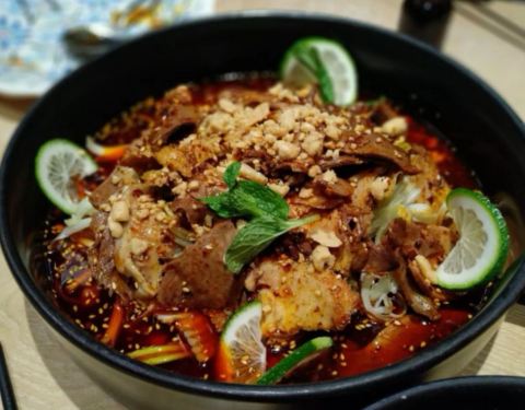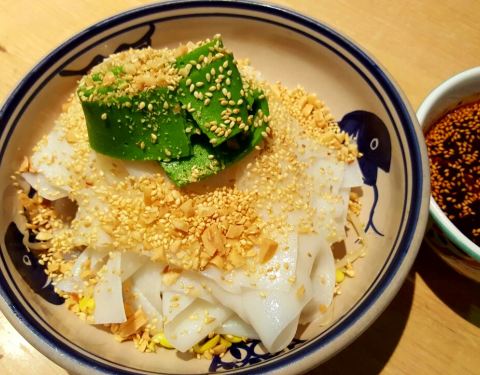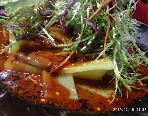 第一次尝试面皮 麻酱香浓 加上辣椒更过瘾 青柠海盐牛肉又嫩又鲜美 就是酸菜鱼有刺吃起来稍微麻烦些