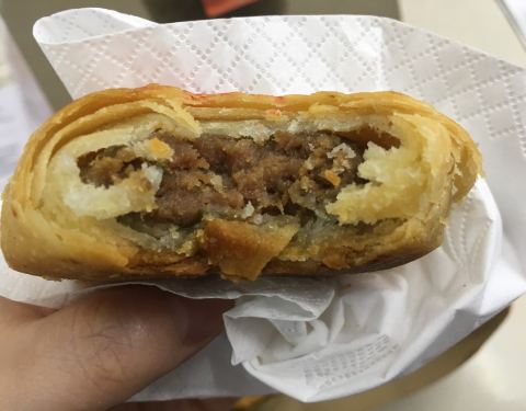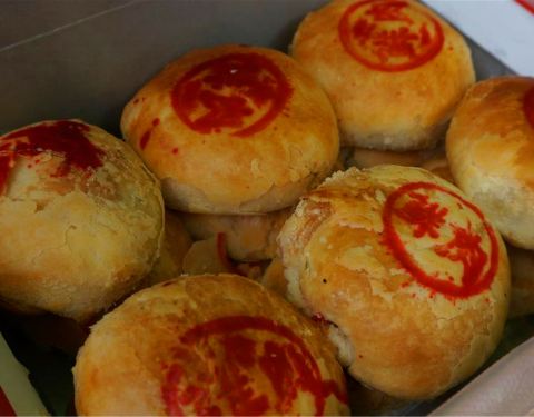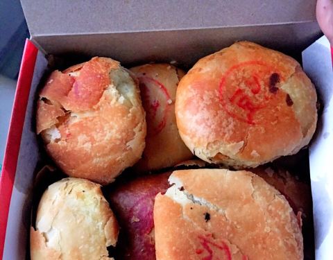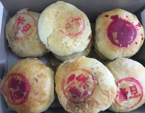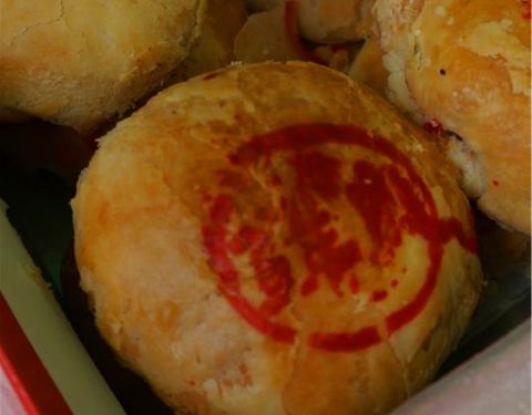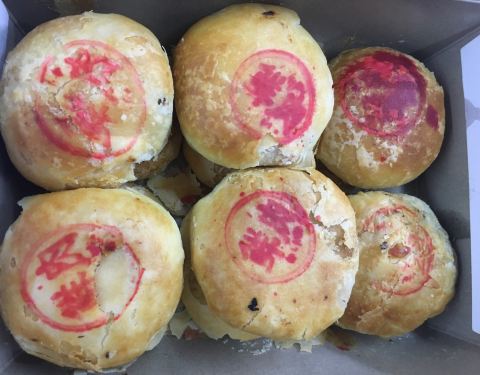 生意火爆的小吃店,鲜肉月饼馅料丰腴饱满。