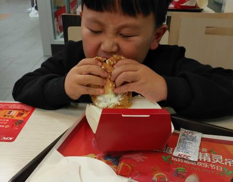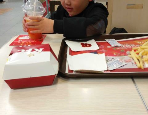小孩特别喜欢吃肯德基,每次过节都会去吃,每次都很高兴。