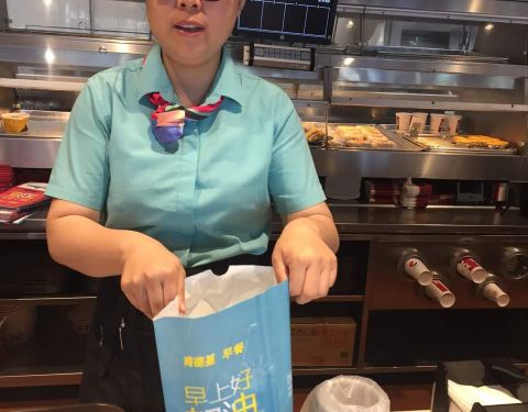 常来吃的一家KFC,早上只有一个收银,有些慢的,服务态度还不错。