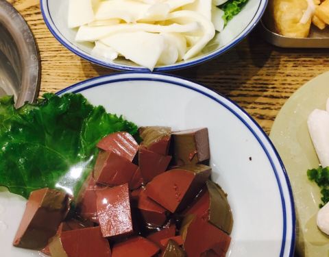 小伙伴说想吃火锅 然而又不能吃辣?! 于是放弃了重庆火锅 之前去过新业后面那家东镇老火锅印象很好~ 合肥路这家停车太难了..... 店里人也是很爆满。 鸳鸯锅,辣锅不算很辣。 纱布袋 必须点的哈哈,一份六只俩人比较合适啦。 鸭蛋黄年糕 小伙伴的好奇心, 蛮好吃,但是有些冻了,煮完了就裂开了。 这一份俩人吃不上, 毕竟年糕类晚上吃多了不好消化。 羊肉 带脆骨的(竟然忘拍肉) 感觉没有新业那家肉好,有点难咬? 牛肉 也是要了半份, 也没吃上有点浪费。 鸭血 完全是我自己吃的一份....吃吃补血哈哈哈 调料最近大爱蒜泥香油+芝麻+花生~ 热量什么的见鬼吧哈哈哈哈~