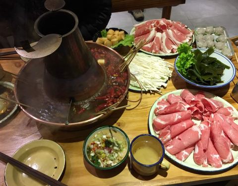 火锅的各种肉类量很大,实惠,黄喉最好!!高钙羊肉也不错