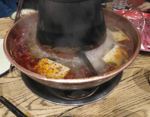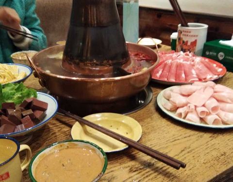 小伙伴说想吃火锅 然而又不能吃辣?! 于是放弃了重庆火锅 之前去过新业后面那家东镇老火锅印象很好~ 合肥路这家停车太难了..... 店里人也是很爆满。 鸳鸯锅,辣锅不算很辣。 纱布袋 必须点的哈哈,一份六只俩...小伙伴说想吃火锅 然而又不能吃辣?! 于是放弃了重庆火锅 之前去过新业后面那家东镇老火锅印象很好~ 合肥路这家停车太难了..... 店里人也是很爆满。 鸳鸯锅,辣锅不算很辣。 纱布袋 必须点的哈哈,一份六只俩人比较合适啦。 鸭蛋黄年糕 小伙伴的好奇心, 蛮好吃,但是有些冻了,煮完了就裂开了。 这一份俩人吃不上, 毕竟年糕类晚上吃多了不好消化。 羊肉 带脆骨的(竟然忘拍肉) 感觉没有新业那家肉好,有点难咬? 牛肉 也是要了半份, 也没吃上有点浪费。 鸭血 完全是我自己吃的一份....吃吃补血哈哈哈 调料最近大爱蒜泥香油+芝麻+花生~ 热量什么的见鬼吧哈哈哈哈~