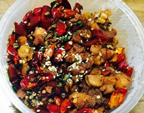 在家懒得做饭,就叫的外卖,三个人两个菜也没吃上,吃这顿饭的时候嘴里已经上火长口疮了,只是这一点也不耽误我吃辣,哈哈哈。毛血旺很鲜美啊,里边料很足,也不是各种菜凑的数,爱吃里边的魔芋片,还有好多肚。辣子鸡的料很足,做的也很进味。七星椒家的拌菜也很美味,就是可惜吃不上不敢点。
