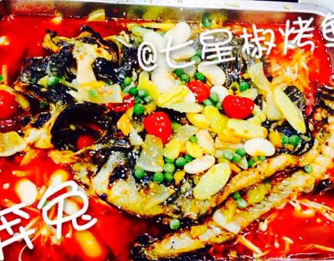 过生日和男朋友选择就近的小馆子,再次来到七星椒(虽然隔壁还有一家,但我们每次都来这家,哈哈哈)。首先,必选鱼类,这次选择的酸菜鱼,好处是可以连汤一起喝,酸酸辣辣的很舒服,并且,那样大一盆有没有,两...过生日和男朋友选择就近的小馆子,再次来到七星椒(虽然隔壁还有一家,但我们每次都来这家,哈哈哈)。首先,必选鱼类,这次选择的酸菜鱼,好处是可以连汤一起喝,酸酸辣辣的很舒服,并且,那样大一盆有没有,两人吃到撑都没吃出来。鱼肉我不知道是什么鱼,刺不是很多,滑滑嫩嫩的,可口。干锅土豆片,一直是我的最爱。洋芋很鲜美,不能吃辣的慎点,的确很辣。老醋花生,能稍微解点辣。上菜很快。 - 这里的烤鱼里面加的东西很特别,有大的蚕豆,还有小青豆,还有鸭血,莴苣,金针菇,都是很高兴的配搭...