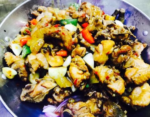 被小伙伴带到大四方这边来吃烤鱼和牛蛙的,话说对这里的餐馆还真是不怎么了解,晚上看着这边也是热闹非凡的情景,八点左右过来的,这边一排上的馆子,都还是蛮红火的模样,进入之后发现还有挺多客人在,要了烤鱼...被小伙伴带到大四方这边来吃烤鱼和牛蛙的,话说对这里的餐馆还真是不怎么了解,晚上看着这边也是热闹非凡的情景,八点左右过来的,这边一排上的馆子,都还是蛮红火的模样,进入之后发现还有挺多客人在,要了烤鱼和牛蛙,选了乌江鱼之后坐等上菜的节奏,店家服务员妹子还会很亲切的告知菜别点多了吃不上什么的,赞一个吧哈哈哈,上菜还是很速度的,这里的烤鱼里面加的东西很特别,有大的蚕豆,还有小青豆,还有鸭血,莴苣,金针菇,都是很高兴的配搭,烤鱼的肉很嫩,鱼皮考完了之后特别的香哈哈,其实烤鱼最喜欢吃的还是鱼皮部分吧,牛蛙是之后端上来的,里边的配菜都是莴苣,还有许多的蒜瓣儿,觉得和烤鱼相比的话,调味更加清淡一些,牛蛙的肉质很不错,应该是那种比较胖的蛙吧,看着还有许多的家常炒菜,可以下次过来尝试一下呢哈哈,很推荐的一家川菜馆子,还有分店,是专门做炒菜的。 - 这家川菜馆。尤其是这个土豆片。不过去了真心不错。配着米饭真心鲜美。不太好找。有酥皮但是里面嫩嫩的