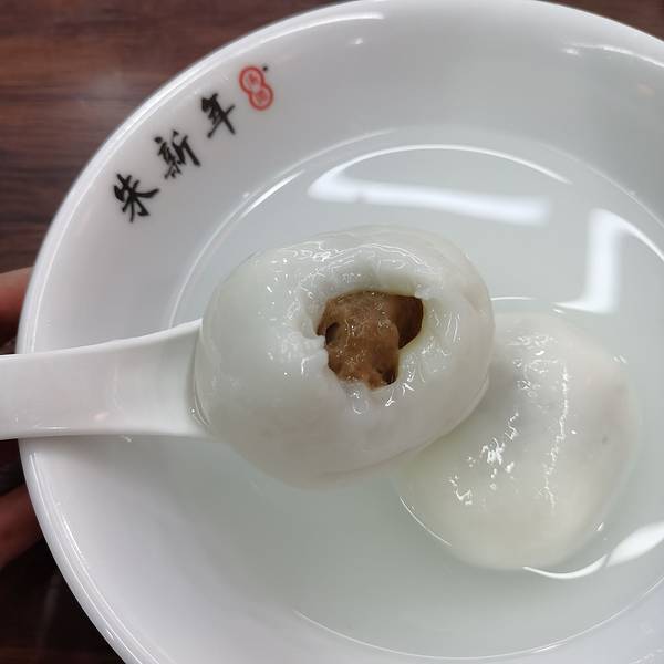 苏州的第一味道——朱新年的传统小馄饨和鲜肉汤圆。 讲真的,看纪录片的时候也知道小馄饨的精髓就是馄饨皮,可是习惯了东北大馅馄饨的我对于眼前一碗馄饨皮的小馄饨感觉就在吃片汤,不过还是很好吃的,毕竟是碳水的快乐,如果再多一点点馅料就更好啦。 肉汤圆简直是我认知里的新世界。能吃出来手搓汤圆的诚意,糯米皮有手工制作的厚度,猪油调和的很有味道,像我这种基本不吃猪油的人偶尔吃一次是可以吃出来的荤味。肉馅就是纯纯纯纯的肉团子,一口咬下去很扎实,此处还是会想念芝麻汤圆,甜汤圆更适合北方胃。传统小馄饨鲜肉汤圆店里很多附近的上了岁数的居民,能看出来是老少皆宜的早餐食堂,当地人会直接把汤圆拨进面或者馄饨汤里一起吃,汤圆变身菜码技能,地道吃法之一。