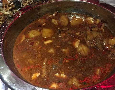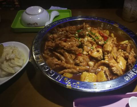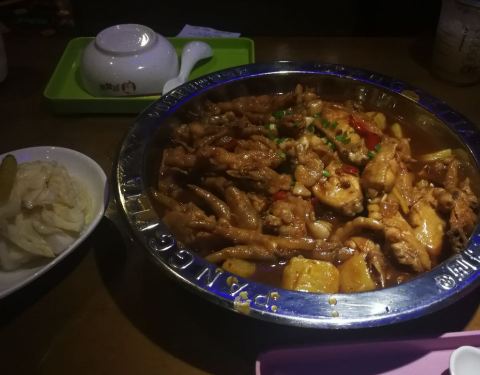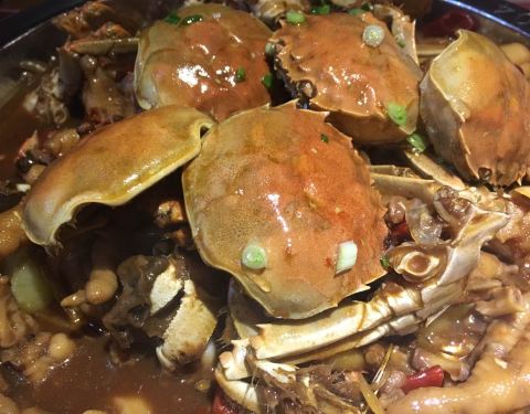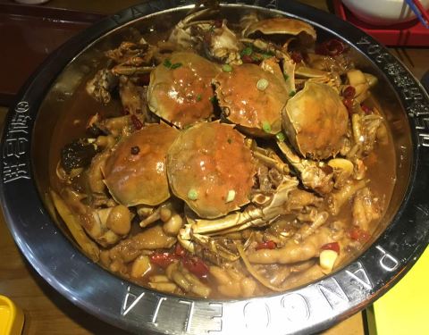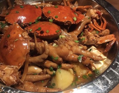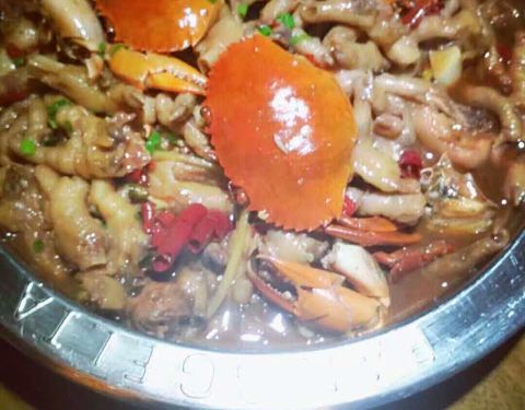 - 肉蟹煲的打底永远是一大堆鸡爪,他家的皮蛋豆腐还不错哦口感很嫩