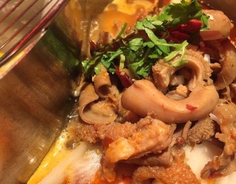 地点在石路地铁口附近,5号口出,可能要走一段路。餐厅在天虹7层。潮汕口味火锅。吃了牛杂鸳鸯锅,觉得不错,牛杂特别软,十分好吃。然后有牛肉不同位置,涮的时间也不一样,都是现切的。蘸酱种类丰富,牛肉酱,海鲜酱,芝麻酱,花生酱,豆腐酱,香油等等,最后牛肉酱较好吃。另外,还有番茄和黄瓜吃。