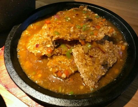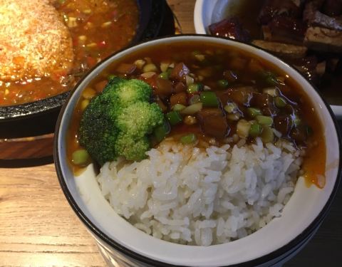 - 芋头排骨,就几块,排骨味道勉强吧……里面的芋头超级好吃。 锅巴,具体叫什么忘记了……也不错,焦焦的