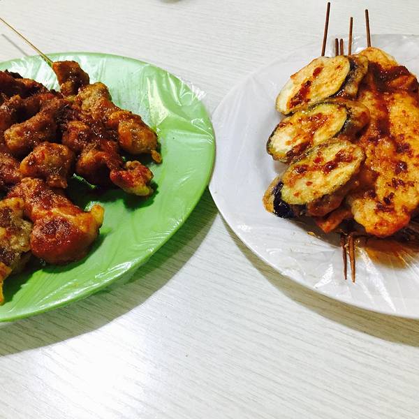 【价格】48.9/2人 【地址】市南区登州支路与登州路交叉口西50米 【电话】 【其他】前一天凌晨到的酒店,洗漱完就更晚了,所以早上睡到了自然醒才出门。 胡同炸串:去青岛之前盗月社正好在做青岛专辑,就把感兴趣的店马了一下,出门前搜了下门口有公交车直达,决定先去吃点垫个肚子。店在登州支路上,建行旁边的一个巷子,但由于很容易错过所以游客请老实打开导航。虽然视频里说这家排队很多,但由于是工作日,去的时候店里就一桌人,自助选串,青岛的炸串几乎都是裹了面糊再炸的,虽然盗月社说炸的好不吸油但其实夸张了,还是挺吸油的,面包是甜酱,其他要的辣酱,辣酱是用蒜蓉辣酱做基底调的,并没有视频里那么惊喜,可能他们没吃过这种酱吧,合肥炸串店也多,所以各种酱的口味我也是从小吃到大。对于吃多炸串的朋友,这家店没必要特意去,路过可以吃一下。