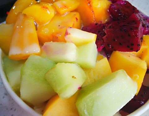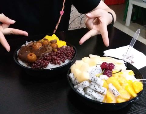 昨天刚刚在你家西湖道吃冰,不知道对我有没有印象,哈哈,老味好吃,酸磨糕给的超级多,还有大块的黄桃果肉,去胡的山楂圆圆哒,还撒了小红豆。水果开会依旧好吃的要命,樱桃,香蕉芒果哈密瓜还有火龙果,冰比之前的味道还好,纯纯的大白兔奶糖味。不知道有没有改良过,总之夏天不吃别家只爱星星,拒绝你周围的二斗和美肴刨冰,只专宠你一家