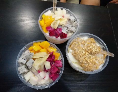 ...看见星星奶冰真是雨中送炭,点了水果开会,一大份水果真的不少,奶冰浇上炼乳真爽,顺便买了几个蛋挞