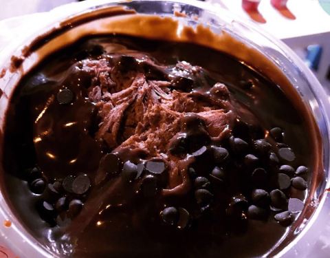 - 超级巧克力,是奶冰 巧克力酱 巧克力豆组成,酱很浓,有一种小时候吃的巧克力冰棍儿的味道,挺怀...