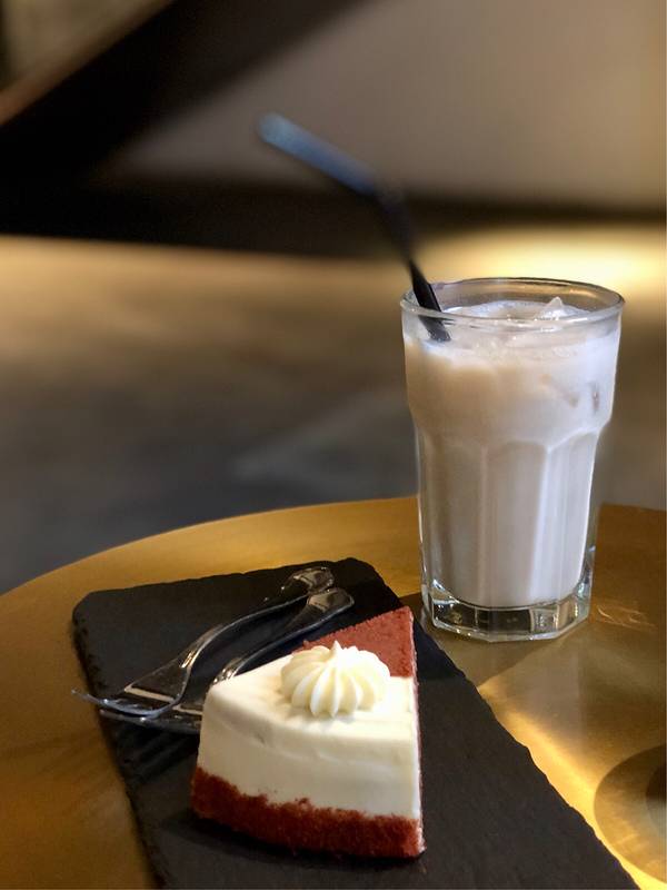 冰拿铁口感很丝滑;红丝绒乳酪蛋糕有浓浓的乳酪味,甜度适中,不会很腻,适合配咖啡一起吃~