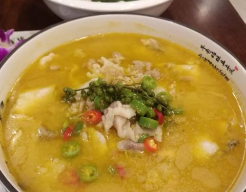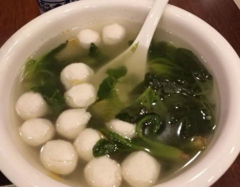 - 清淡的鱼圆汤,鱼圆真的好好吃,汤里配了菠菜非常爽口。楼下是散客,楼上是包间,环境很不错